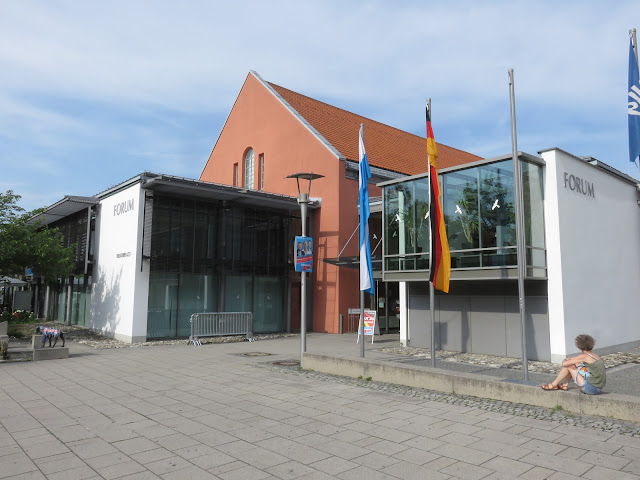 Freilich mussten wir den Hintereingang nehmen. Dazu wieder aus dem oben zitierten AA-Bericht: "Polizei und städtischem Ordnungsamt lag daran, dass sich Anhänger und Gegner der Partei möglichst gar nicht begegnen konnten. So war für die AfD-Veranstaltung nur der Ostzugang des Forums offen. Eine Gegenveranstaltung aus Mitgliedern von Grünen und SPD war für den kleinen Saal angemeldet. Dort fand aber gar keine Kundgebung statt. Vielmehr begnügten sich die Kritiker mit zwei Schaubildern."